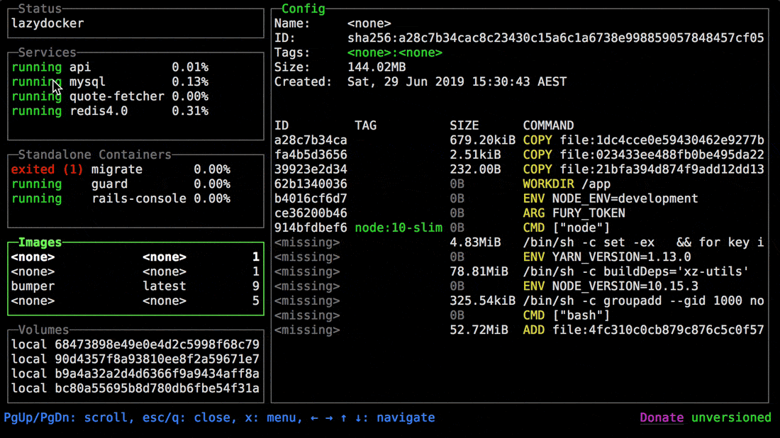 lazydocker - A simple terminal UI for both docker and docker-compose.